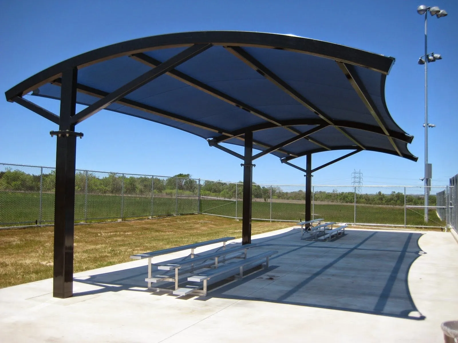 The tensioning of the fabric eliminates and creases in the membrane and is strong enough to withstand any severe weather and potential damage.